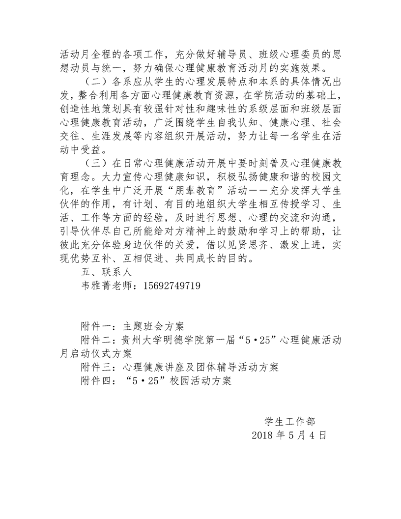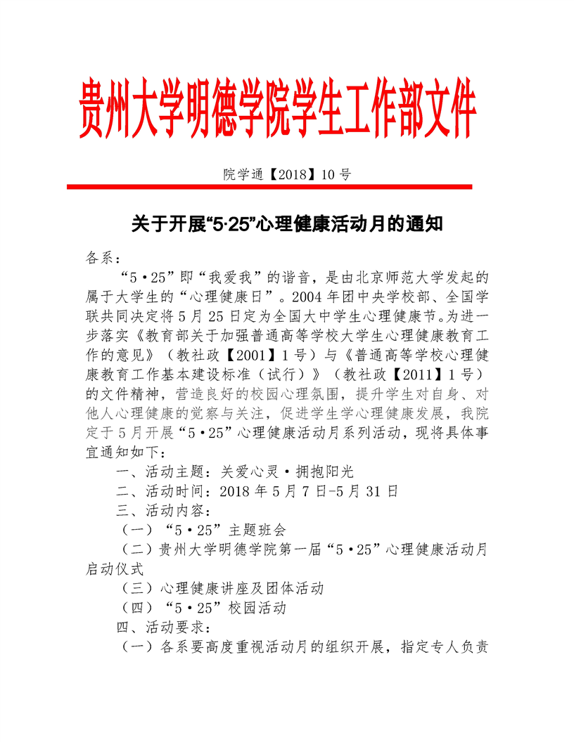 关于举办贵州大学明德学院5·25大学生心理健康活动月的通知