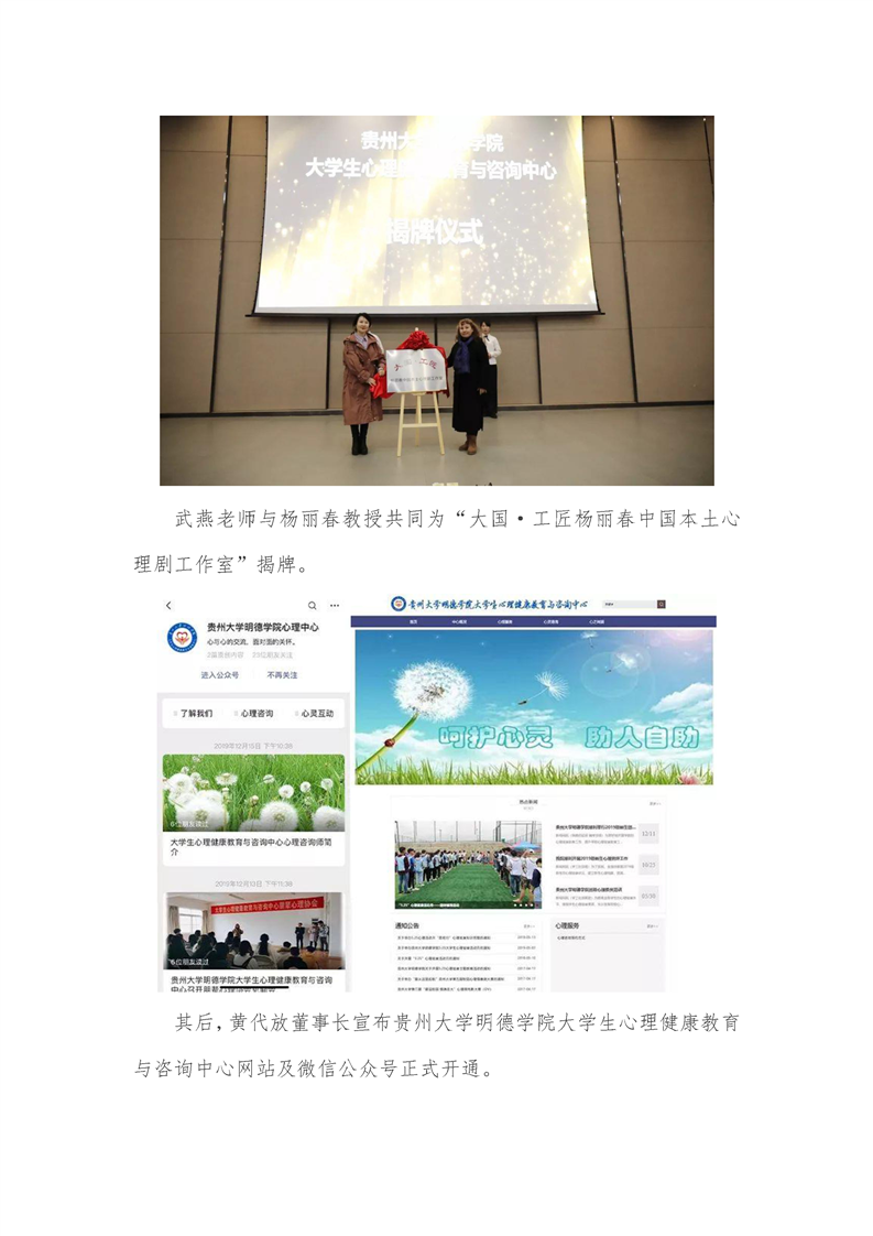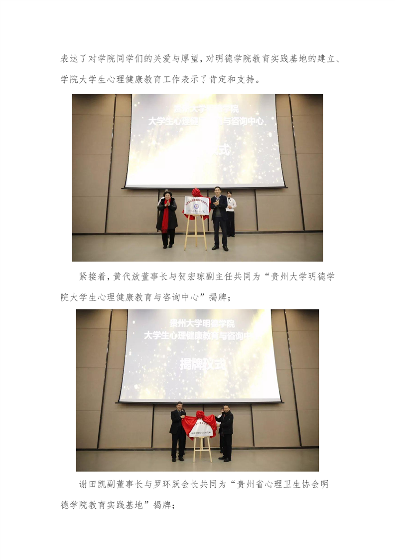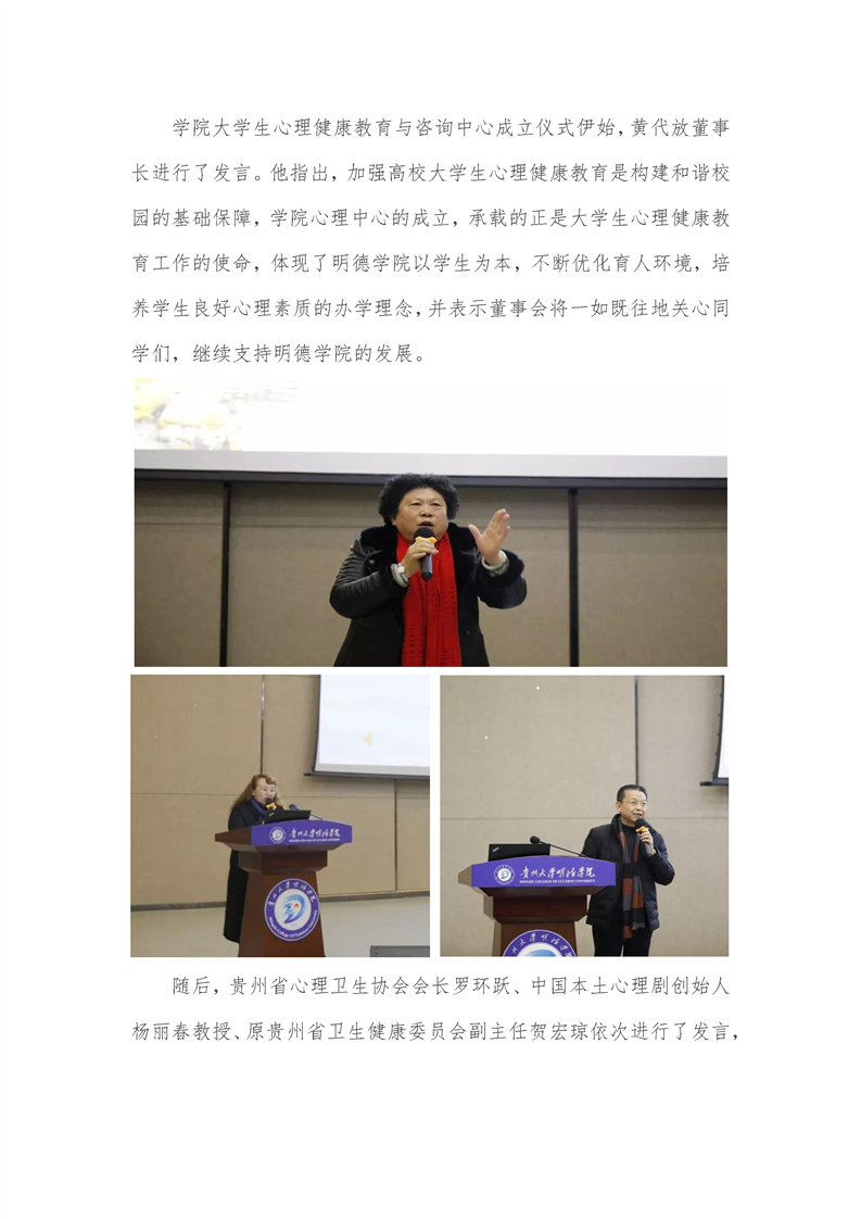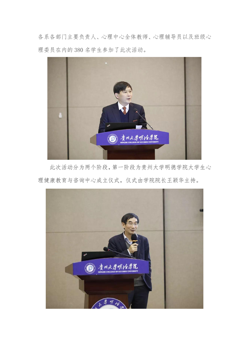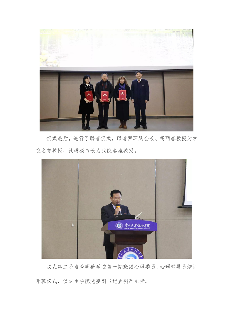贵州大学明德学院举办大学生心理健康教育与咨询中心成立仪式暨第一期班级心理委员、心理辅导员培训开班仪式