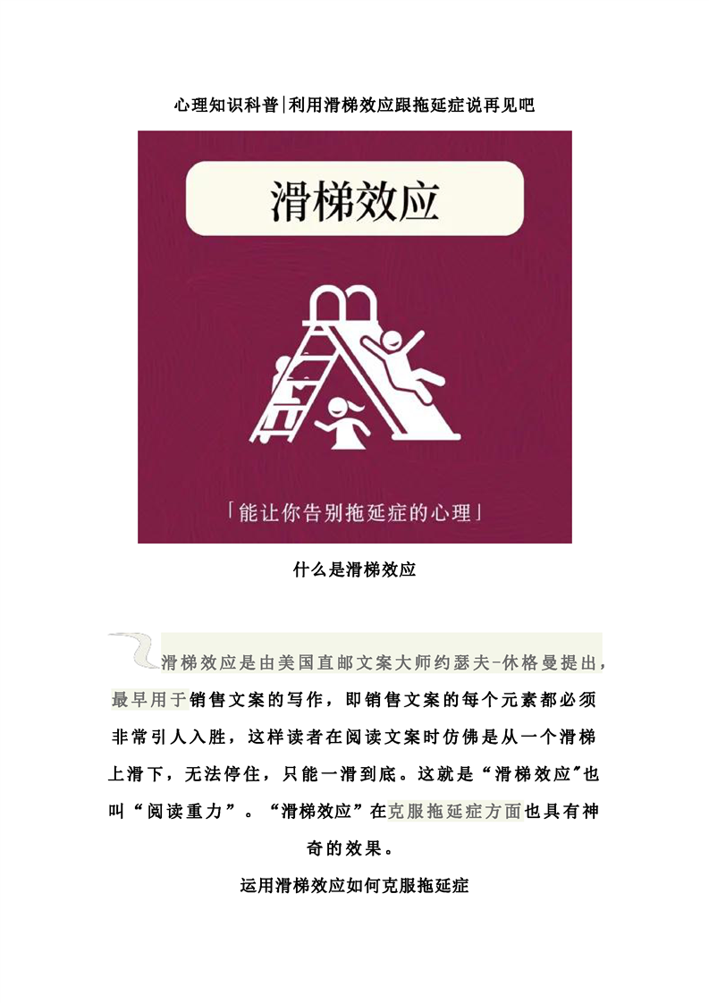 心理知识科普—利用滑梯效应跟拖延症说再见吧