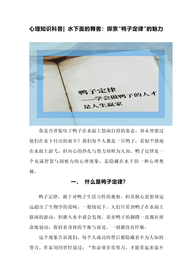 心理知识科普-水下面的舞者:探索“鸭子定律”的魅力