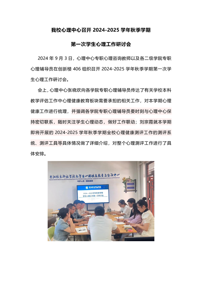 Beat365心理中心组织专职心理辅导员召开2024-2025学年秋季学期第一次学生心理工作研讨会