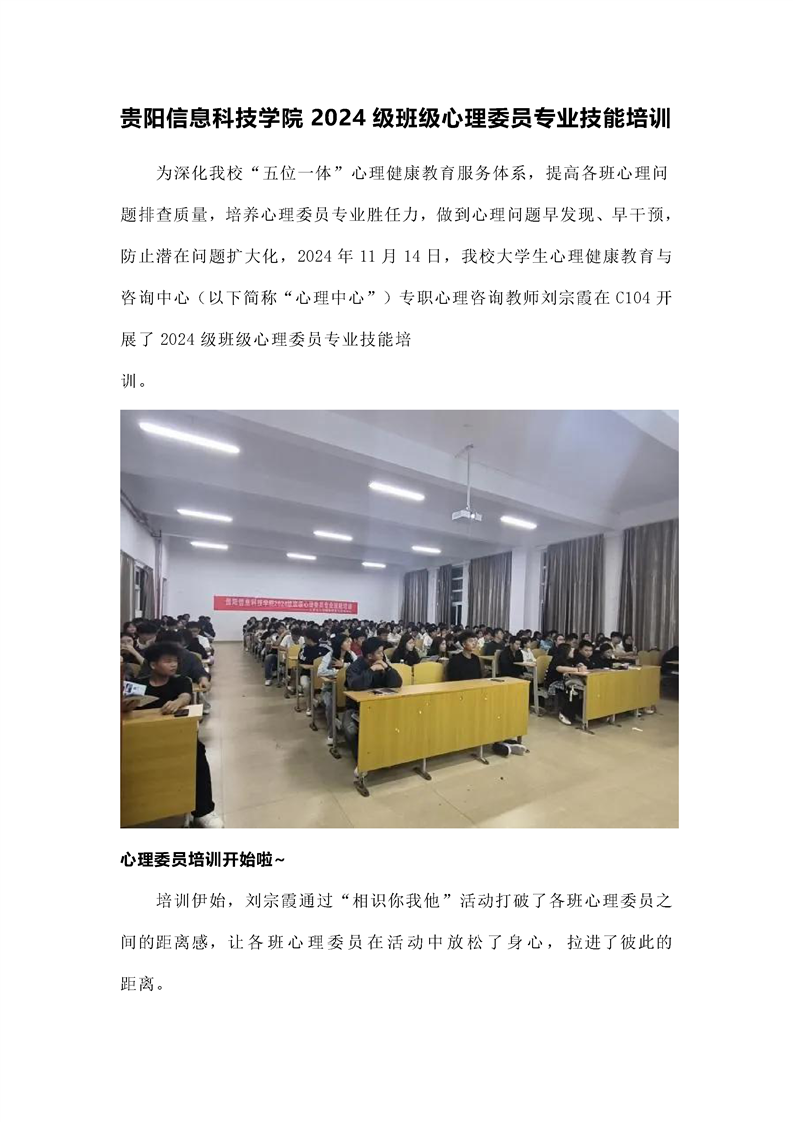 Beat365唯一官方网站2024级班级心理委员专业技能培训