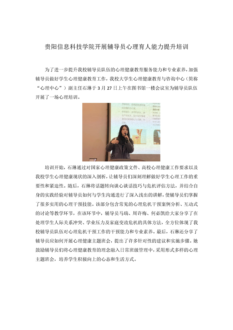 Beat365唯一官方网站开展辅导员心理育人能力提升培训