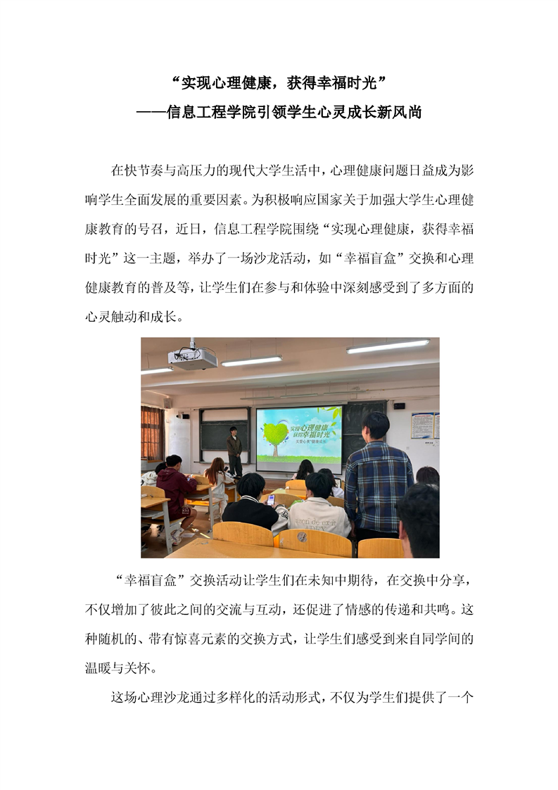 “实现心理健康,获得幸福时光”——信息工程学院引领学生心灵成长新风尚