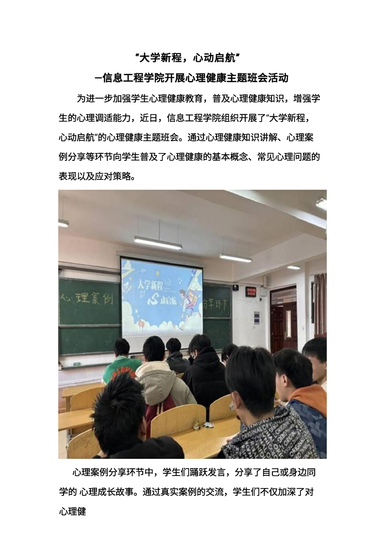 “大学新程,心动启程“——信息工程学院开展心理健康主题班会活动