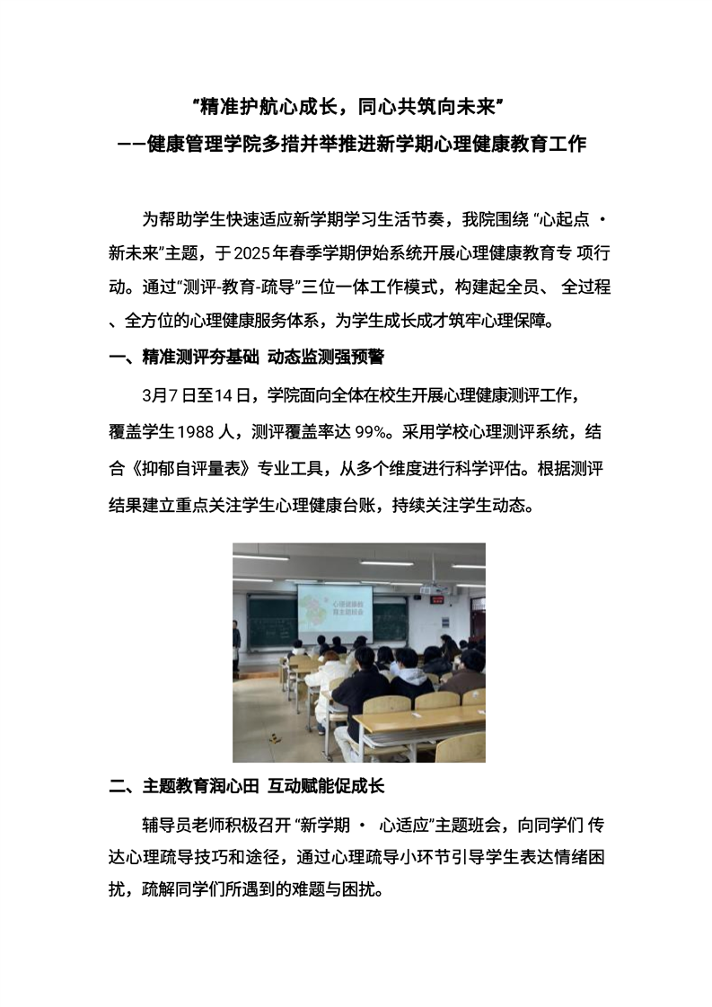 “精准护航心成长,同心共筑向未来”——健康管理学院多措并举推进新学期心理健康工作