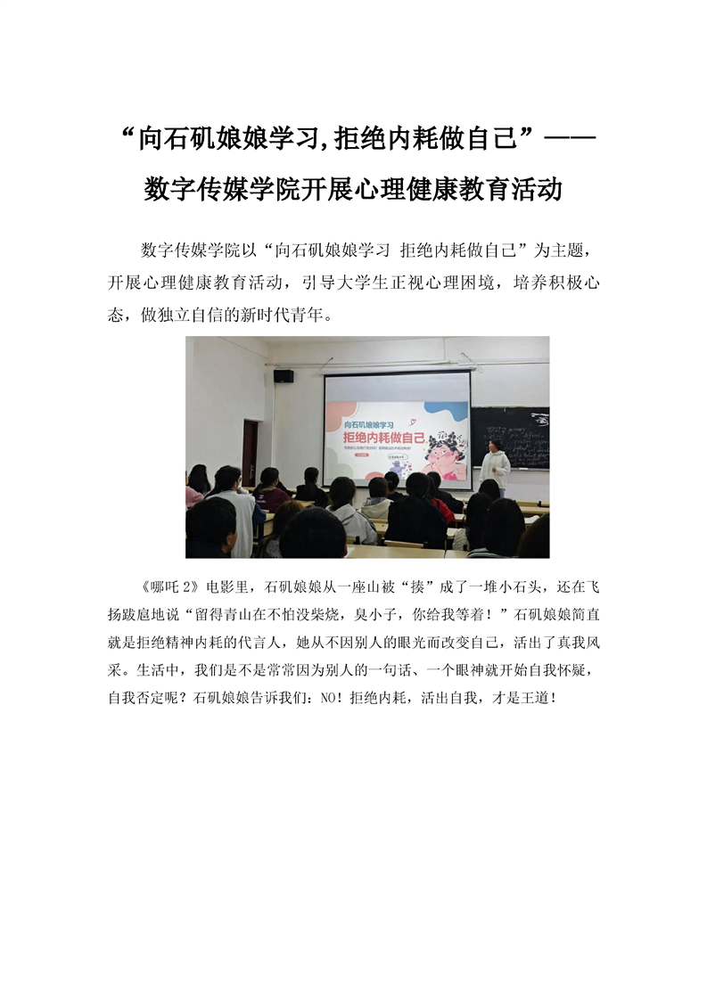 “向石矶娘娘学习,拒绝内耗做自己”——数字传媒学院开展心理健康教育活动