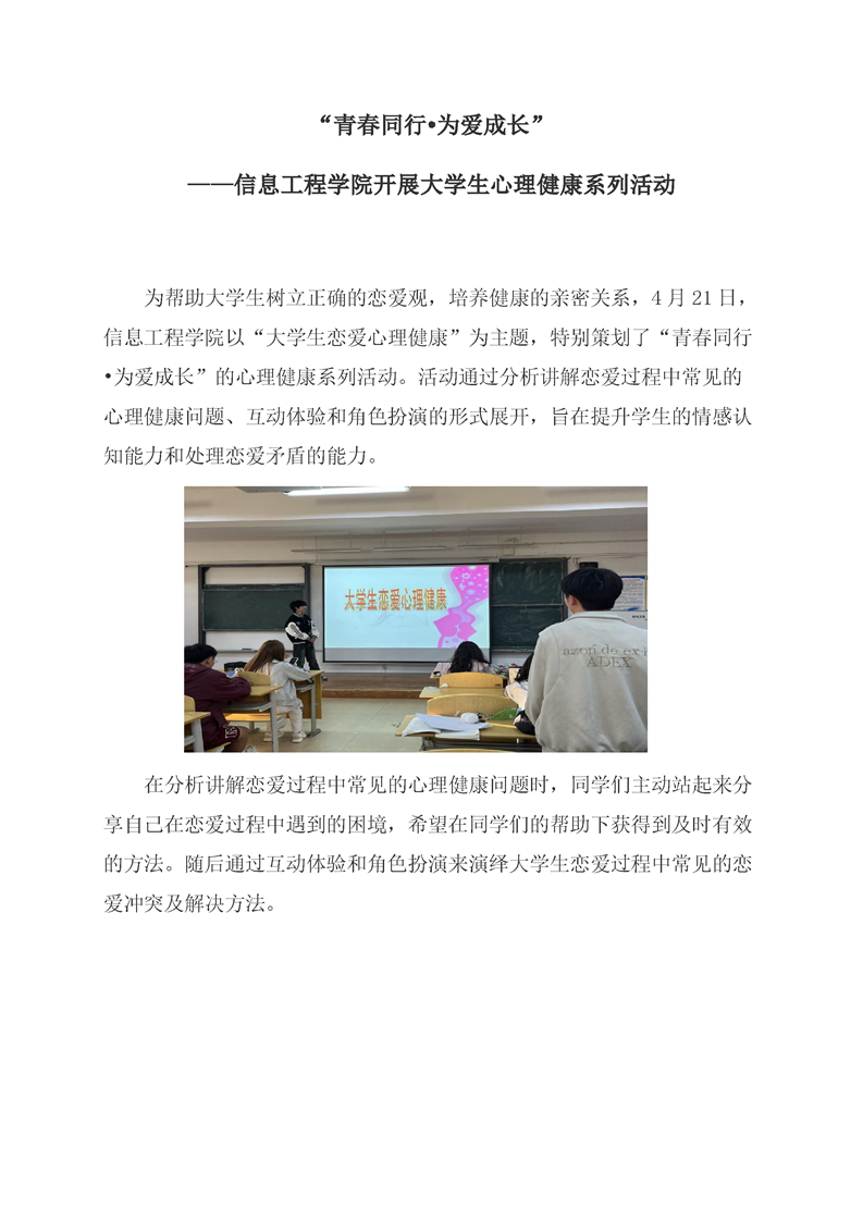 “青春同行 为爱成长”——信息工程学院开展大学生心理健康系列活动