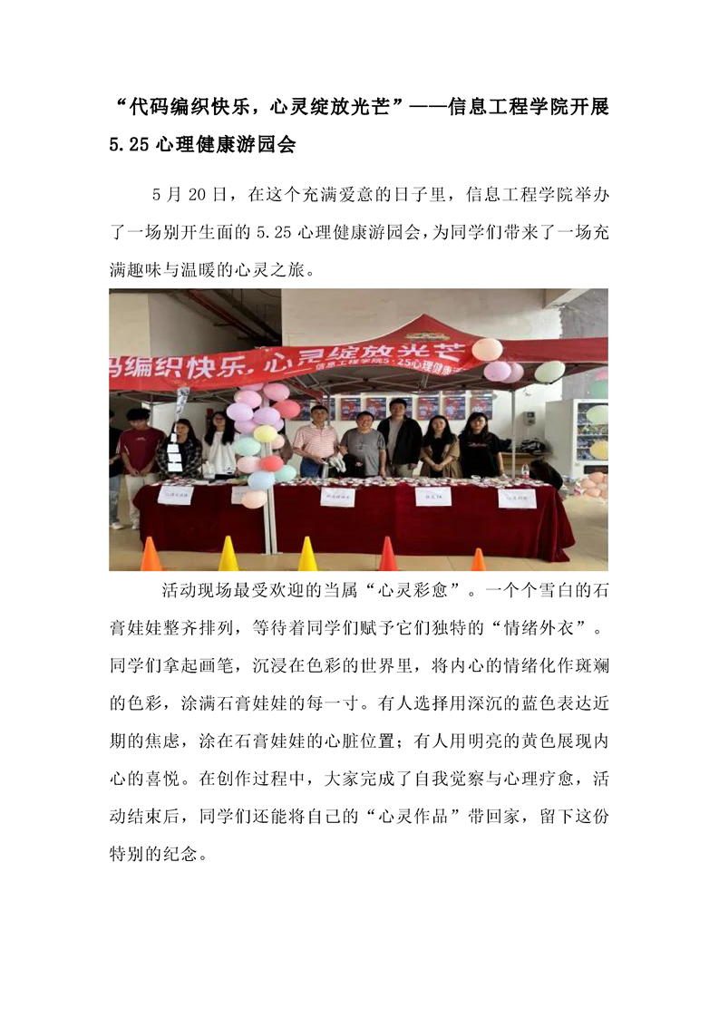 “代码编织快乐,心灵绽放光芒”——信息工程学院开展5.25心理健康游园会