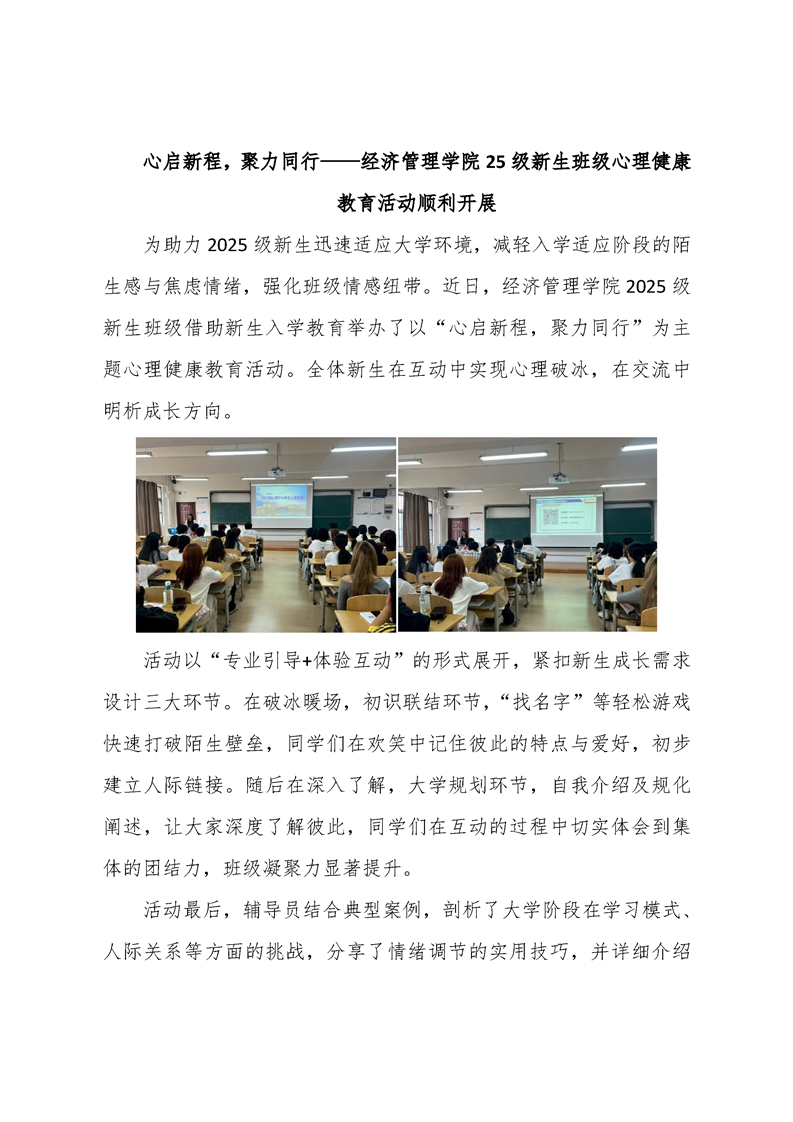 心启新程,聚力同行——经济管理学院25级新生班级心理健康 教育活动顺利开展