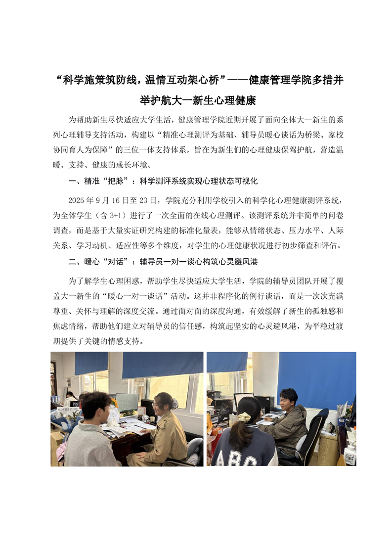 “科学施策筑防线,温情互动架心桥”——健康管理学院多措并举护航大一新生心理健康