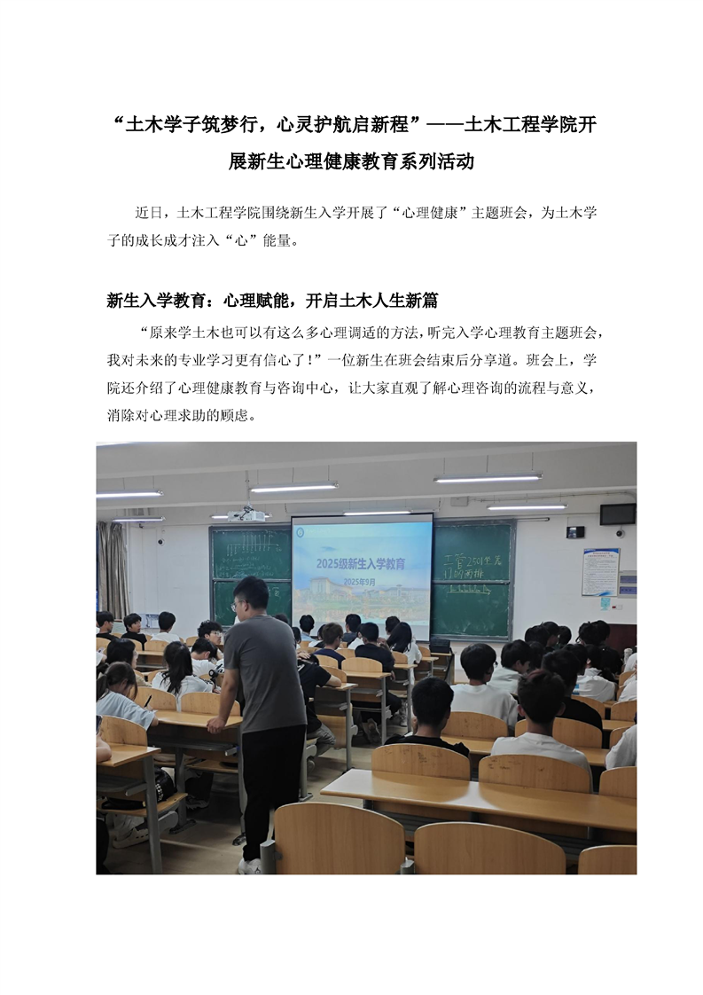 “土木学子筑梦行,心灵护航启新程”——土木工程学院开展新生心理健康教育系列活动