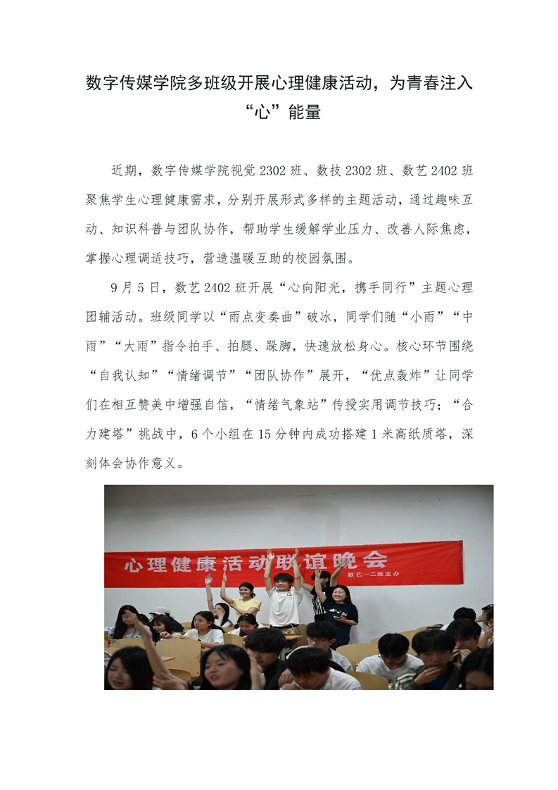 数字传媒学院多班级开展心理健康活动,为青春注入“心”能量