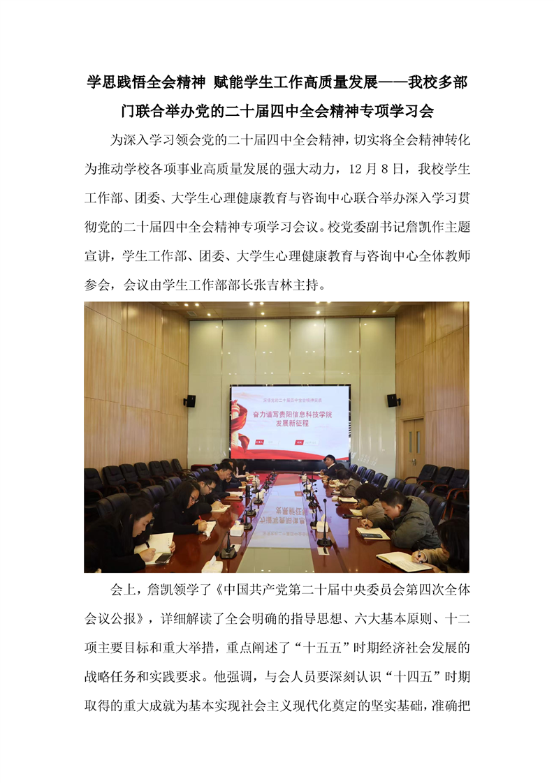 学思践悟全会精神 赋能学生工作高质量发展——Beat365多部门联合举办党的二十届四中全会精神专项学习会