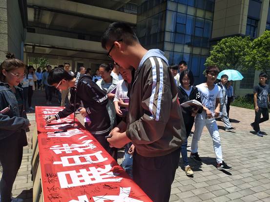 一、我系C栋门口举行全院师生签名活动,同学们参与度很高,大家都很关注心理健康发展。