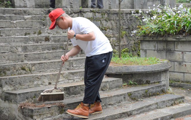 随后,同志们有的拿起扫把,有的拿着手帕,有的提着垃圾桶走进陵园开展扫墓活动。同志们像对待自己的亲人一样,认真打扫陵园,擦拭墓碑,整个陵园充满着庄严肃穆的氛围。