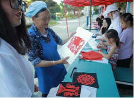 青春献爱,心系板当。为了从小培养小朋友们民族精神,弘扬中华民族传统文化,青鸽服务队的同学们在圆梦社区特别准备了一场剪纸活动。“一剪之趣夺神功,美在民间永不休”这是郭若沫曾对剪纸艺术的赞誉。大家在同学们的引导下,将红色卡纸进行折叠、描画、裁剪,同时每一个人在剪纸过程中聆听了非遗故事,感受非遗魅力,体验剪纸艺术的独特魅力与神秘奇巧,为当地居民剪出具有民族特色的作品。