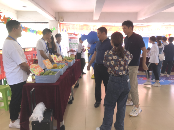 信息工程系迎新工作点以“水果伴作礼物·寓意寄托祝福”为主题,以五种类型水果寓祝福之意,为远道而来的新生学子及其家长们送上信息工程系师生诚挚的祝福与欢迎。五种水果中柿子寓意“事事如意”、橙子寓意“心想事成”、苹果寓意“平平安安”、芒果寓意“光芒万丈”、梨子寓意“大吉大利”,且均放置字牌予以标识。每位新生可任选自己喜欢的水果类型,并在自己敲下的一声清脆锣响中开启寓意美好的新学期。
