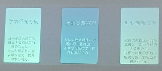 讲座过程中,周林以自身职业经历为切入点,就如何确定目标、如何保持学习动力,以及大数据行业的发展动态与大数据专业的职业规划作出了详细建议与讲解。他还讲述了什么是大数据和数据要素,论述了大数据的4V特征,使同学们对大数据的概念内涵有了更加深刻的认识。通过讲述阿尔法狗与无人驾驶的案例引入机器学习和人工智能技术,使同学们对专业的前沿方向有了进一步的了解。同时他还作了数据行业岗位分析和研究方向的分享,为学生们更好地制定自身的职业发展规划和研究方向提供了有益的参考和经验启示。
