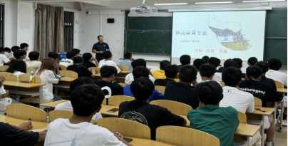 随后,李建老师对休闲体育专业的基本情况、专业方向、培养目标、应具备素养、专业特色、课程设置和就业前景等进行了全面深入的阐释。通过生动的视频案例分析和详实的数据展示,充分展现了休闲体育的独特魅力与广阔前景,使 2024 级新生对所学专业有了更为清晰的认识,进一步坚定了他们的专业选择和学习方向。