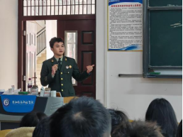 随后,邀请到了我院岩土2301班学生李天乐。他作为一位有着丰富入伍经历的学生、作为学校预征班学生负责人,给现场同学们带来了一个感人至深的分享。李天乐谈到,他之所以选择去当兵,是因为心中有一个坚定的信念:想要去保护想保护的人,想去做不敢做的事。他分享了自己在部队中的成长经历,从最初的迷茫和不适应,到后来的坚定和自信,再到最后的收获和感动。他的故事让现场同学们深受启发,也让他们更加坚定了投身国防事业的决心和信心。