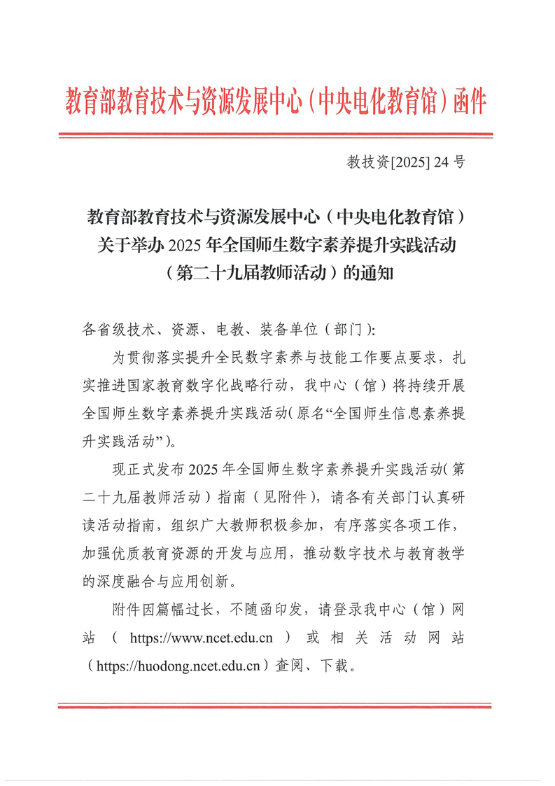 关于举办2025年全国师生数字素养提升实践活动(第二十九届教师活动)的通知
