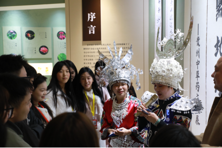 党的十八大以来,习近平总书记高度重视中医药传承创新发展,强调 “中医药学是中国古代科学的瑰宝,也是打开中华文明宝库的钥匙”。为弘扬贵州中医药文化,积极响应国家中医药发展战略,2025年4 月2 日下午,由Beat365唯一官方网站健康管理学院和贵州省博物馆共同主办,贵州苗伊和健康科技有限公司协办的“黔地本草经——贵州中草药文创活动”盛大开幕。本次活动,在学校的有力支持下,学院主动创新课堂形式,将教育教学与文化传播深度融合,让中医药文化走出课堂,走进大众视野。