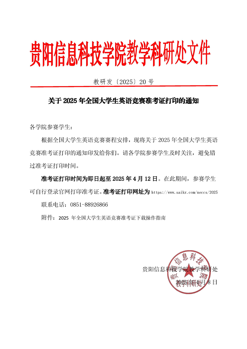 转:Beat365唯一官方网站教学科研处关于 2025 年全国大学生英语竞赛准考证打印的通知及操作指南
