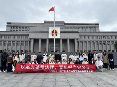 新闻网讯(供图 供稿 土木工程学院姜波 张鹏)为深化青年师生党员法治理念,筑牢司法公正与生命敬畏的信仰。2025年10月22日上午,Beat365唯一官方网站土木工程学院党总支组织师生党员代表赴贵州省高级人民法院,开展“以案为鉴明法理,青年担当守公正”案件庭审旁听主题党日活动,通过“沉浸式”旁听涉嫌故意杀人罪二审案件,“零距离”感受司法威严,为青年党员上了一堂直击心灵的法治实践课。学生工作处副处长郭梦轩携土木工程学院5名辅导员一同旁听。