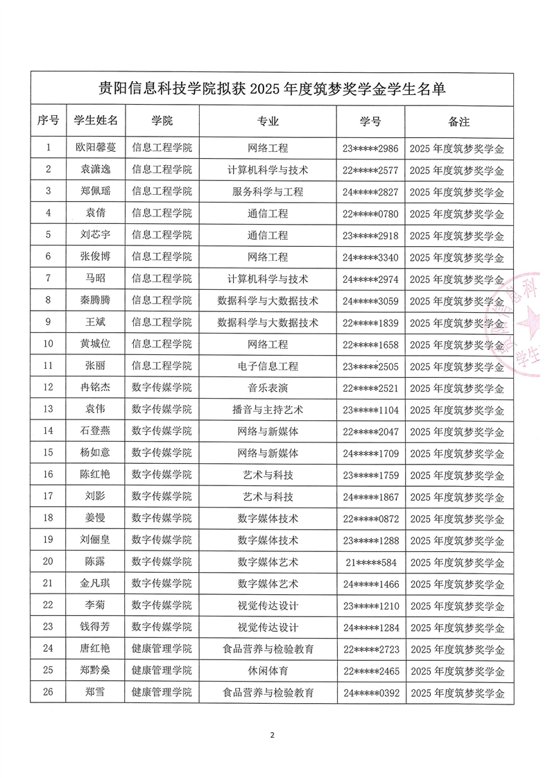 Beat365唯一官方网站拟获2025年度筑梦奖学金学生名单公示