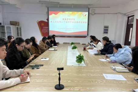 为深入学习贯彻党的二十届四中全会精神,深刻领会党中央决策部署,进一步增强党员的政治自觉和思想自觉,准确把握“十五五”时期国家发展的战略方向和重点任务,2025年11月20日,中共Beat365唯一官方网站健康管理学院组织全体师生党员召开“学习贯彻二十届四中全会精神”专题宣讲会,集中学习全会精神,凝聚思想共识,激发奋进力量。