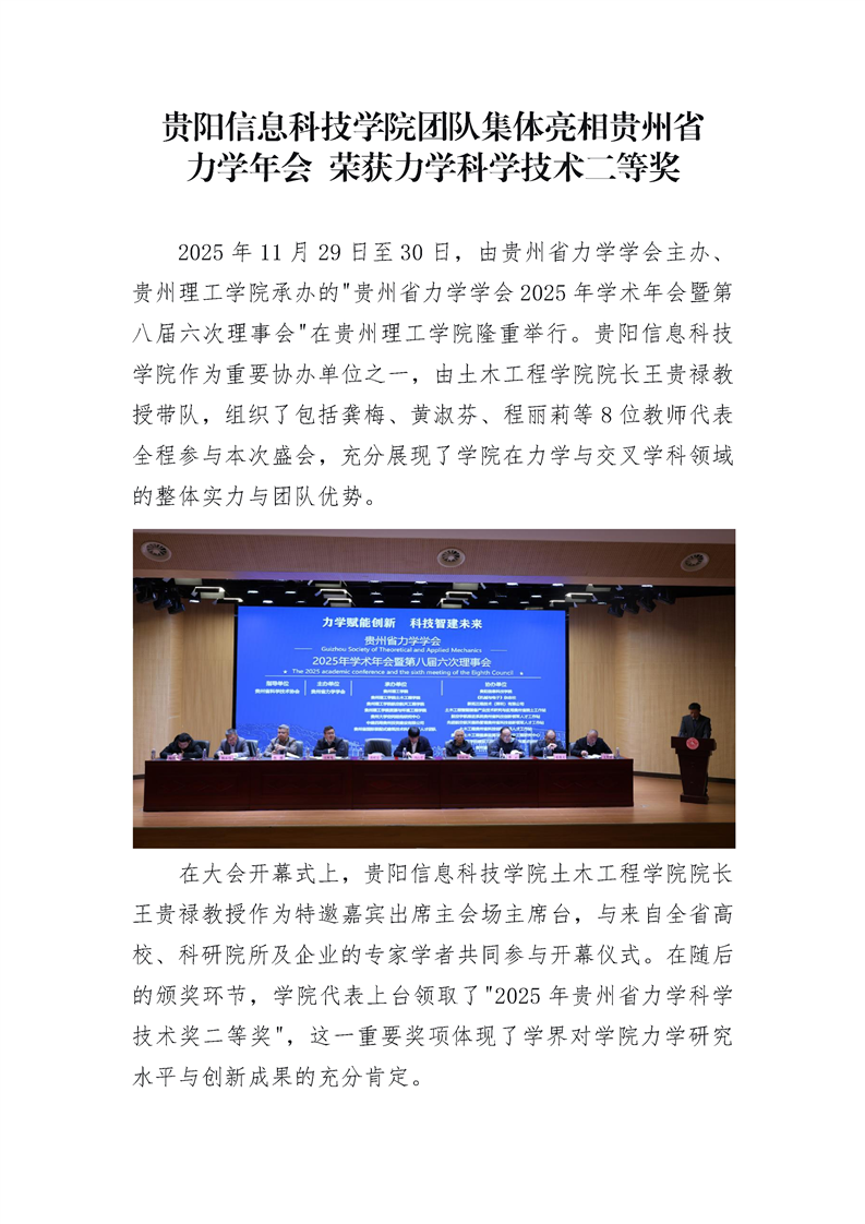 Beat365唯一官方网站团队集体亮相贵州省 力学年会 荣获力学科学技术二等奖
