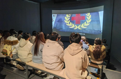 为增强学习实效,活动创新融入科技元素,组织师生通过体感交互设备体验“心肺复苏急救场景”。在虚拟仿真技术构建的战地医院中,参与者需在模拟轰炸声与伤员呼救声中完成急救操作,系统实时反馈动作规范度并生成评分。这一环节将红色教育与生命教育相结合,既让师生感受到战争的残酷,也强化了社会责任意识。学生党员谭巧感慨:“通过技术手段还原历史场景,让我更深刻体会到‘生命至上’的内涵,也认识到新时代青年肩负的责任。”