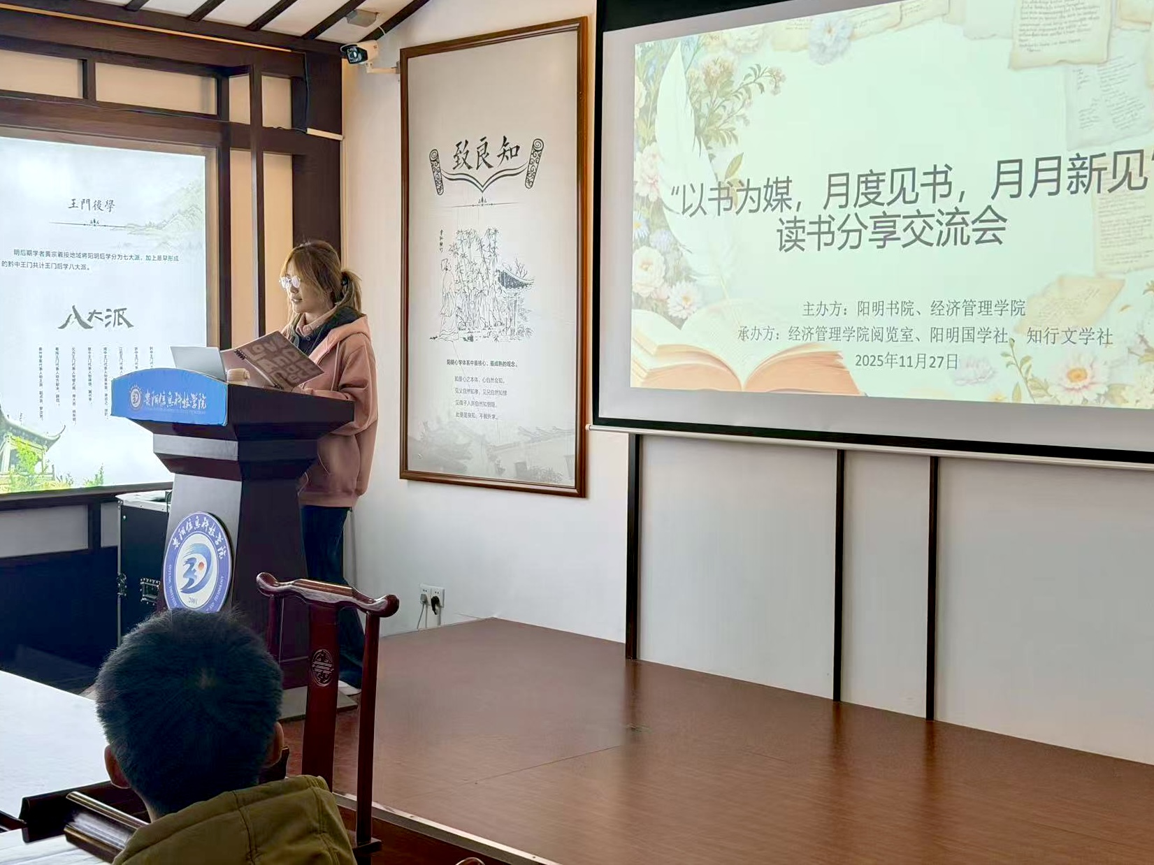 新闻网讯(供稿/供图 余诗雅)书页轻合,余韵悠长。2025年11月27日晚19:00,我院读书分享交流会在阳明书院温馨开展。该活动自报名启动以来,受到广大学子的热烈响应,爱书之人齐聚一堂,在墨香氤氲中展开了一场思想与情感的深度对话。