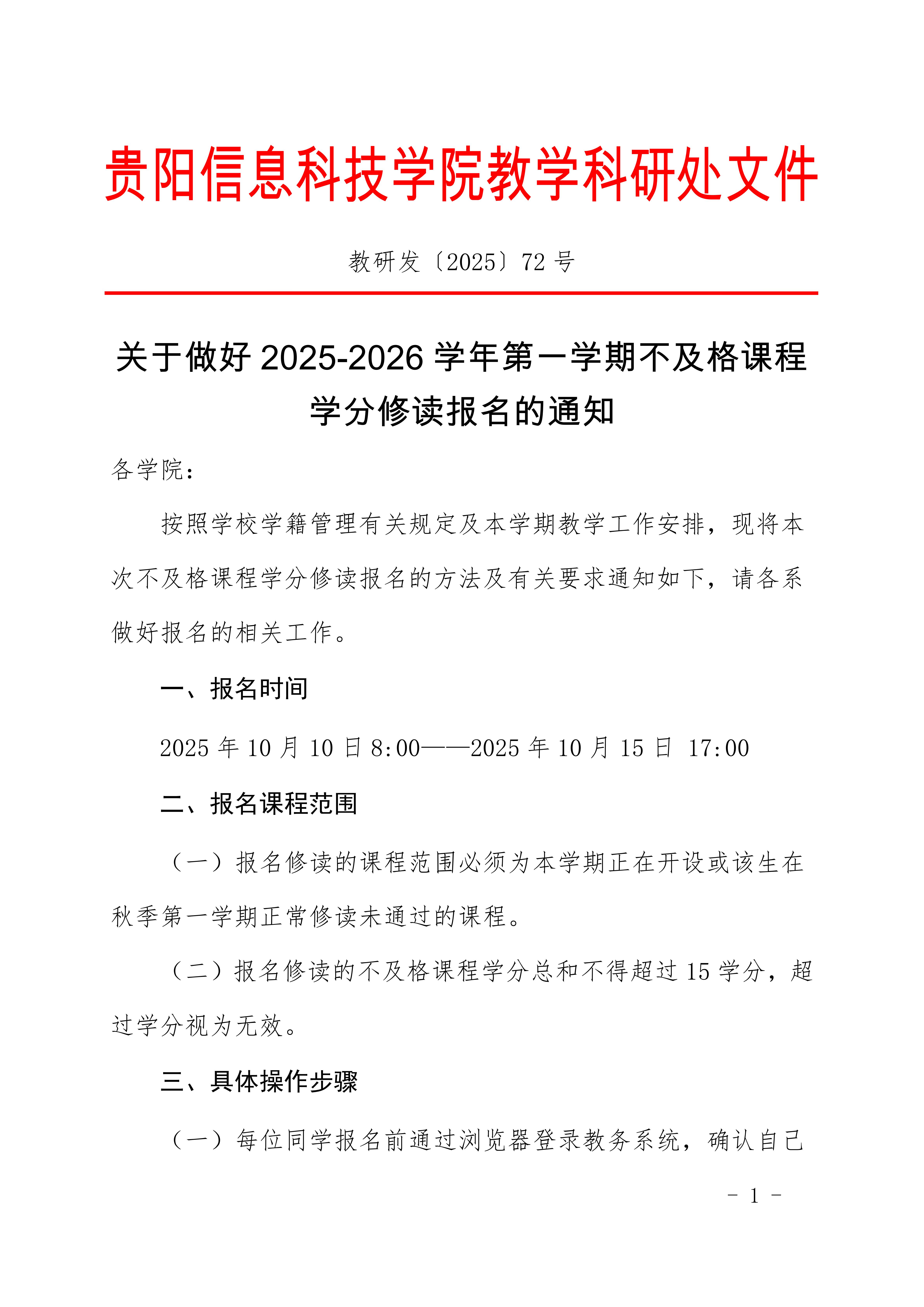 关于做好 2025-2026 学年第一学期不及格课程学分修读报名的通知