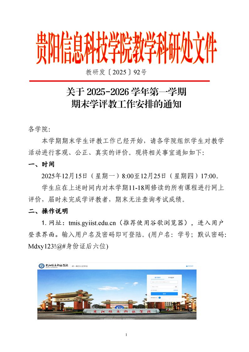 转:教学科研处关于 2025-2026 学年第一学期 期末学评教工作安排的通知