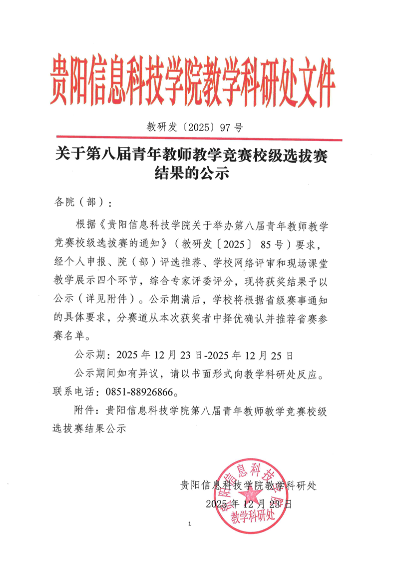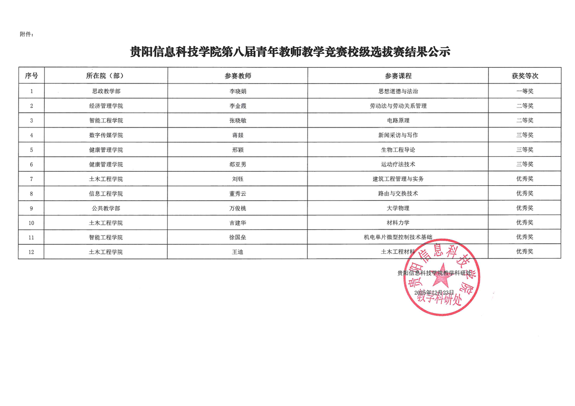 转:教学科研处关于第八届青年教师教学竞赛校级选拔赛结果的公示