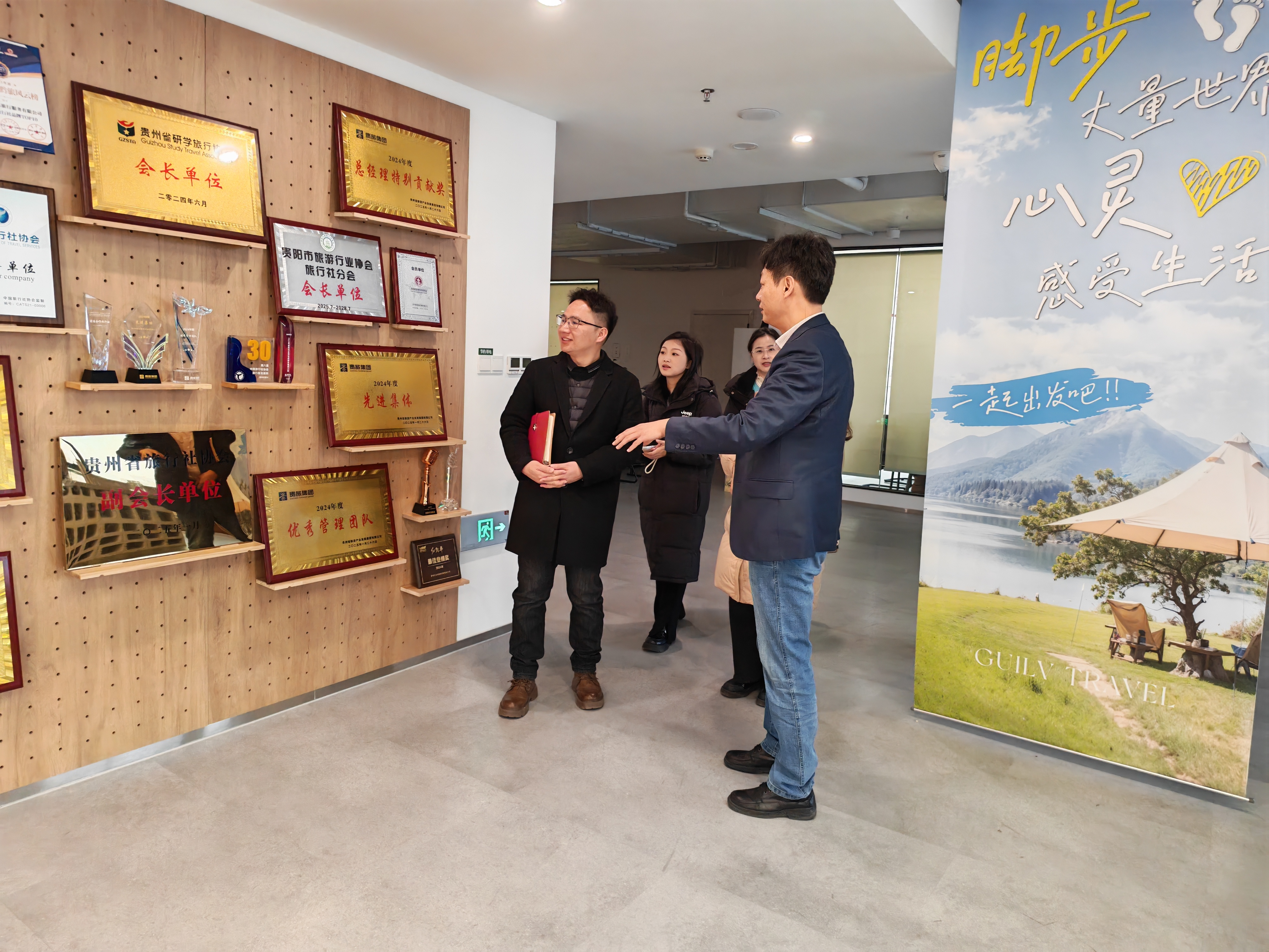 在宋部长引领下,学院教师团队参观了贵旅旅行公司业务运营中心、客户服务部及企业文化展厅,详细了解企业发展历程、业务布局与行业影响力。作为贵州文旅骨干企业,贵旅旅行公司在长线旅游、定制化文旅服务、会展策划等领域经验丰富、资源优质,其规范运营与创新服务模式给教师们留下深刻印象。宋部长还结合行业趋势,介绍了企业在数字化转型、文旅融合方面的实践,为学院旅游管理专业教学改革提供了有益参考。