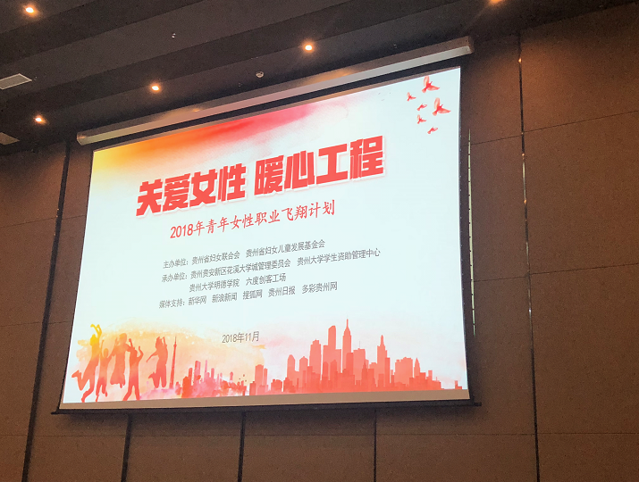 11月28日14:00,贵州省妇联、省妇女儿童发展基金会2018年“关爱女性·暖心工程”青年女性职业飞翔计划讲座在学院图书馆报告厅召开,学生工作处副处长张吉林、助理谢尧、杨笳艺老师及学校师生代表300余人参加此次讲座。
