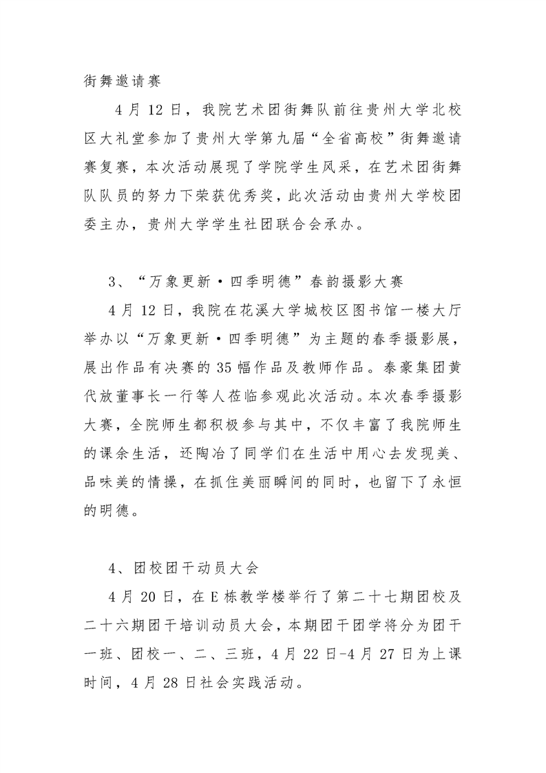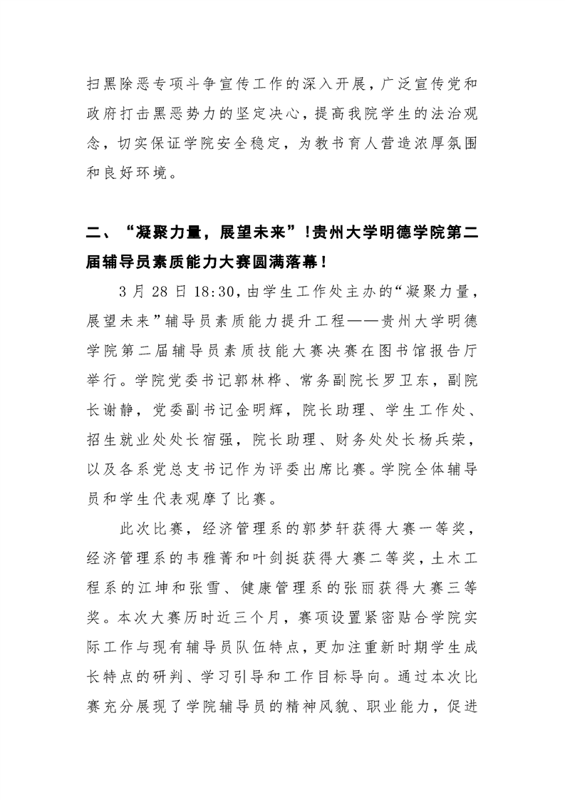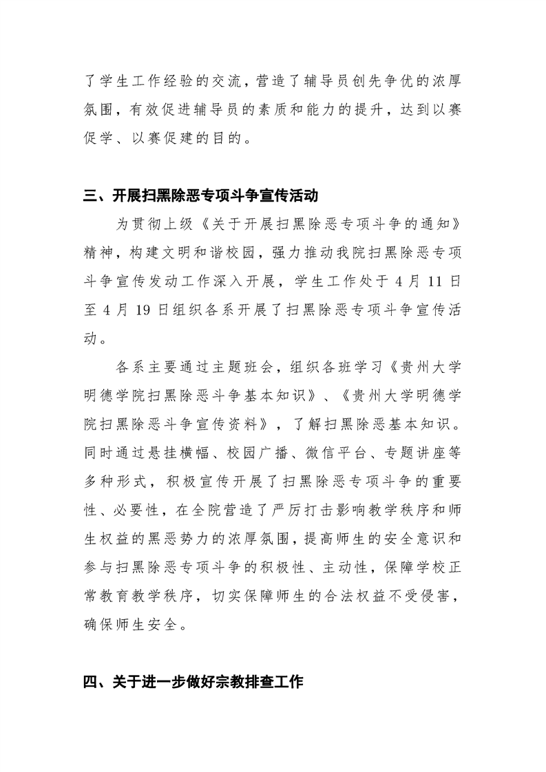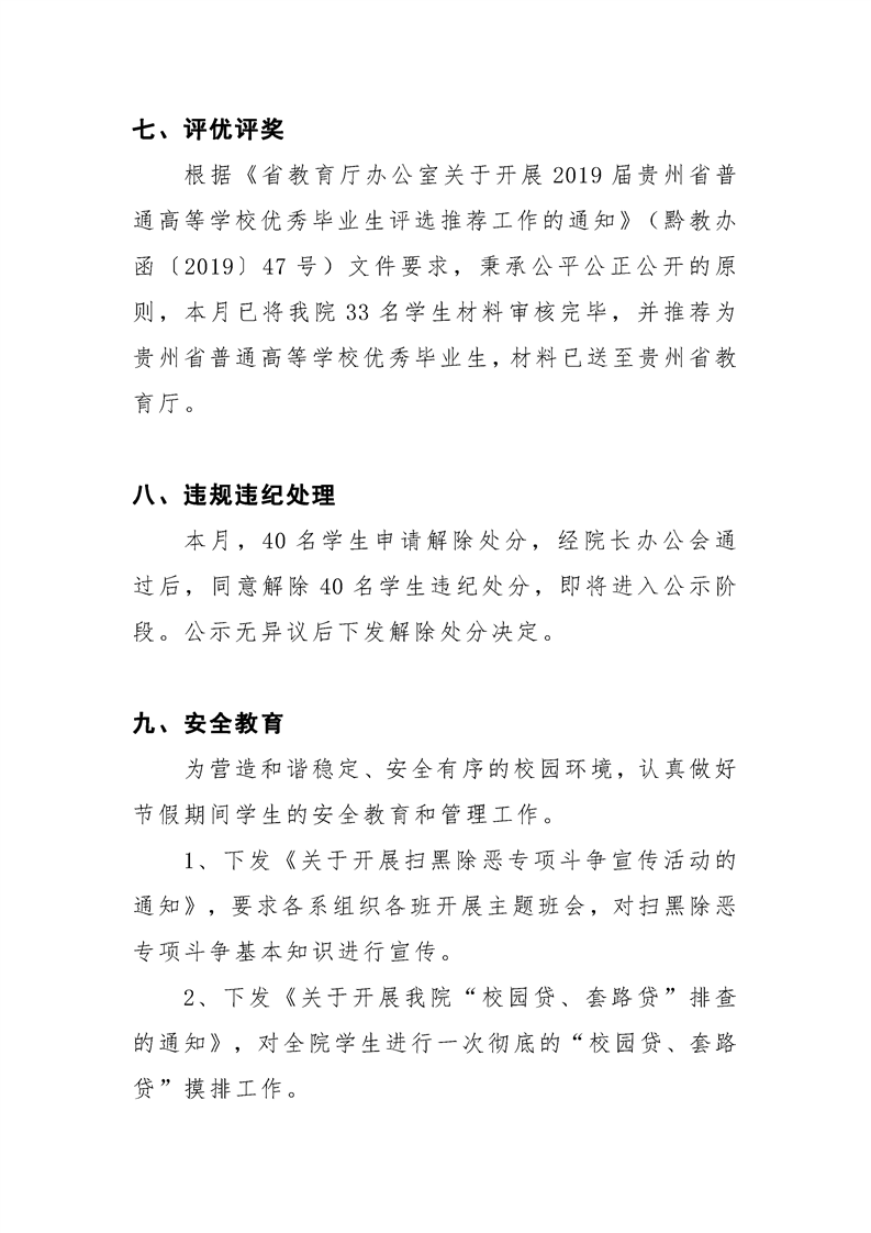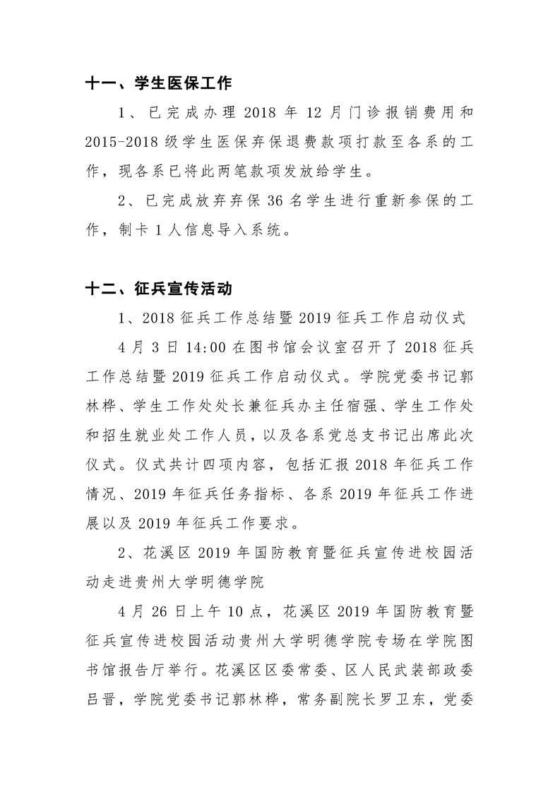 贵州大学明德学院学生工作处2019年4月工作简报