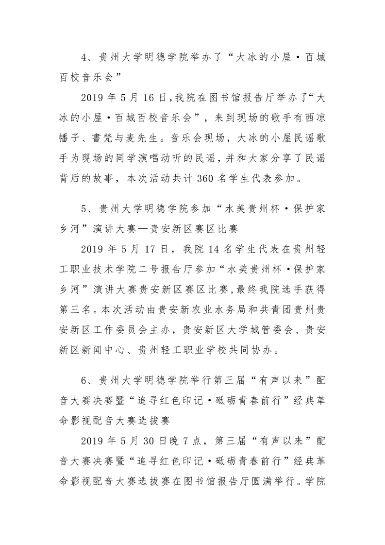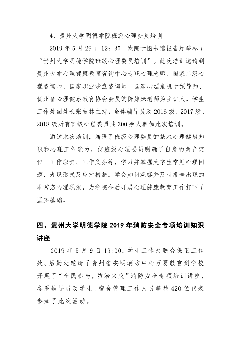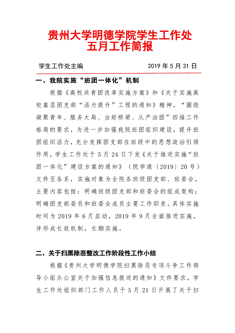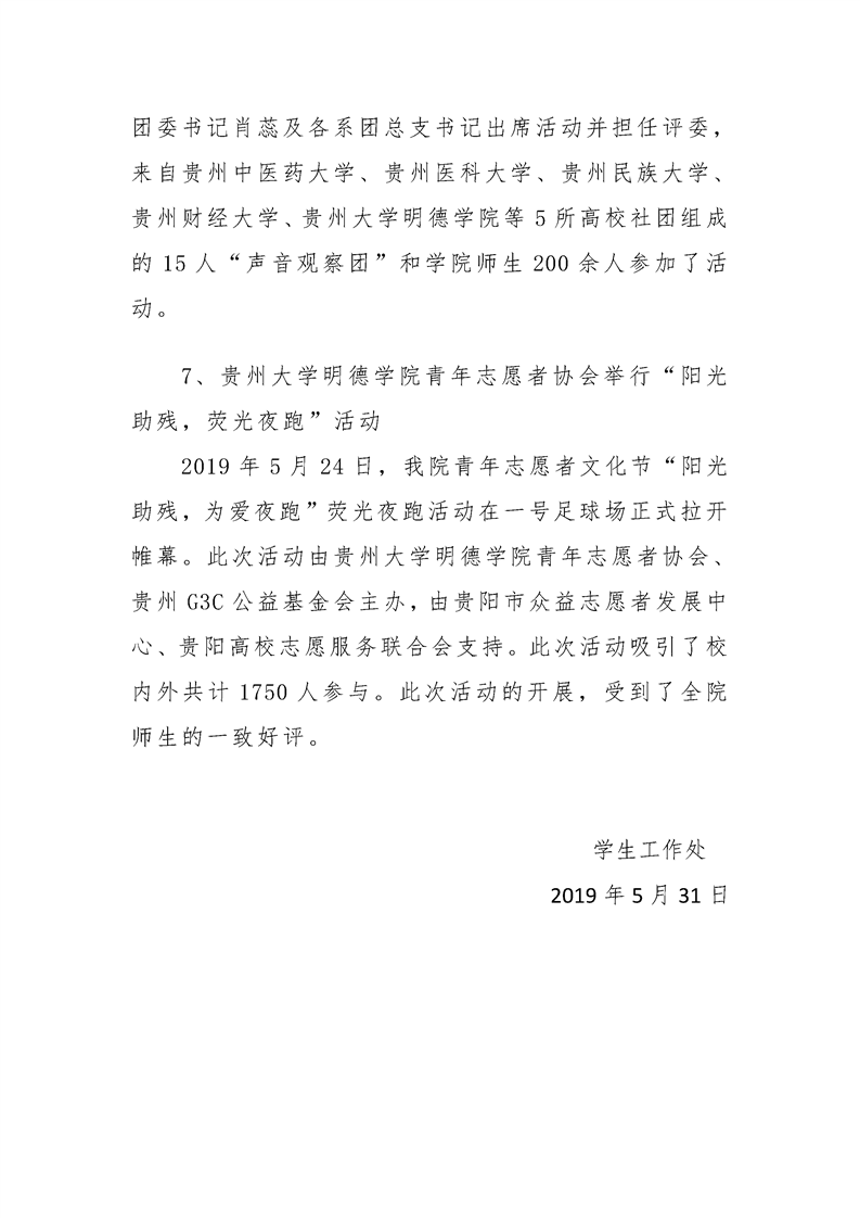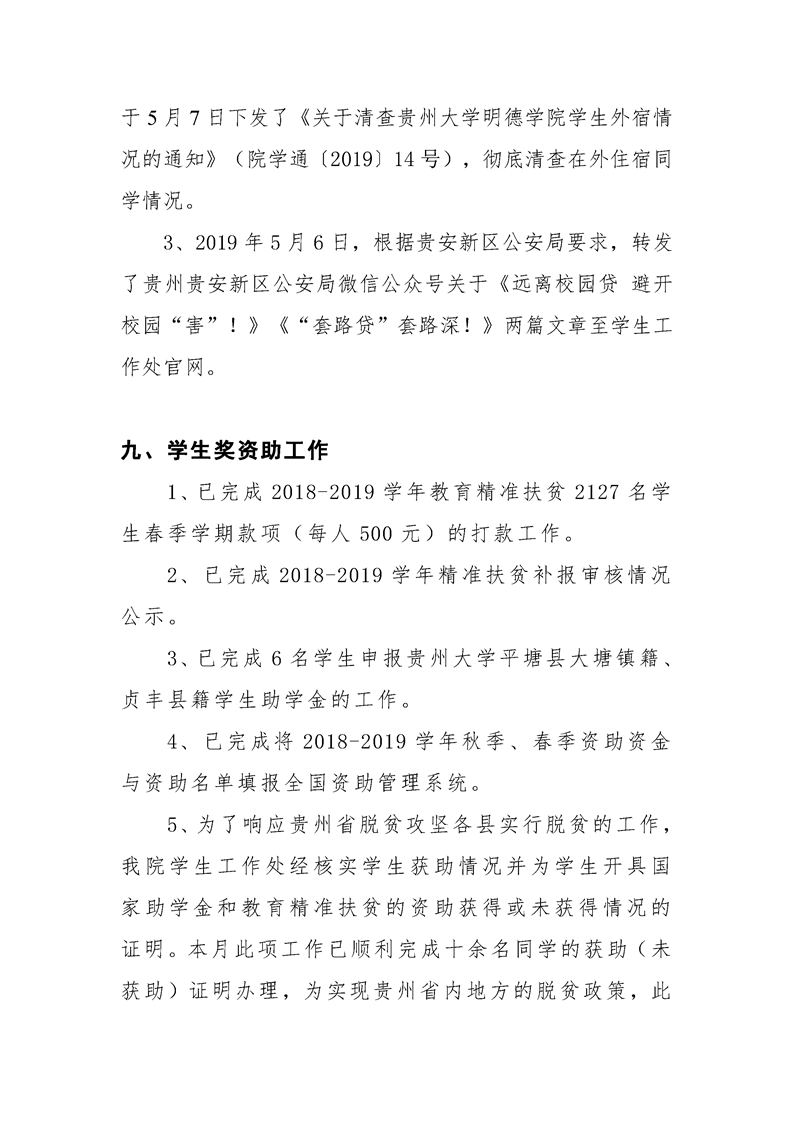 贵州大学明德学院学生工作处2019年5月工作简报