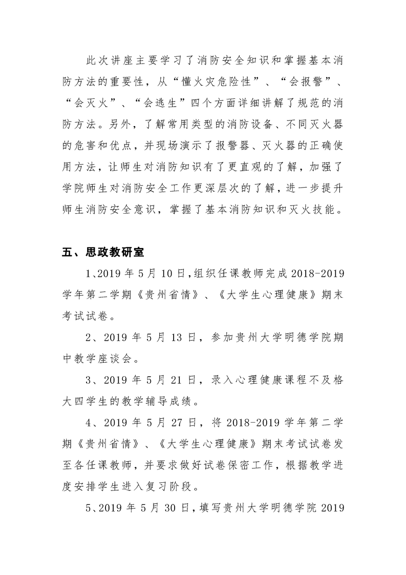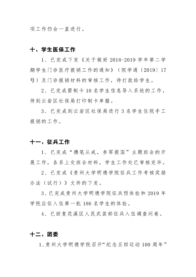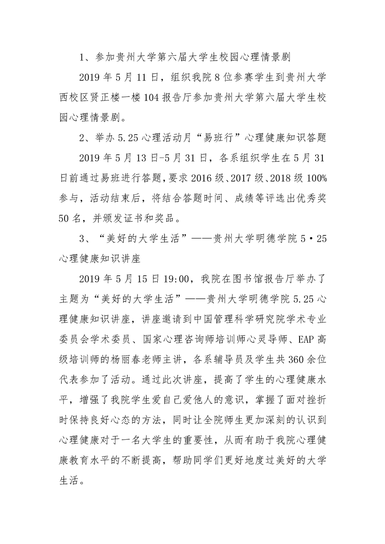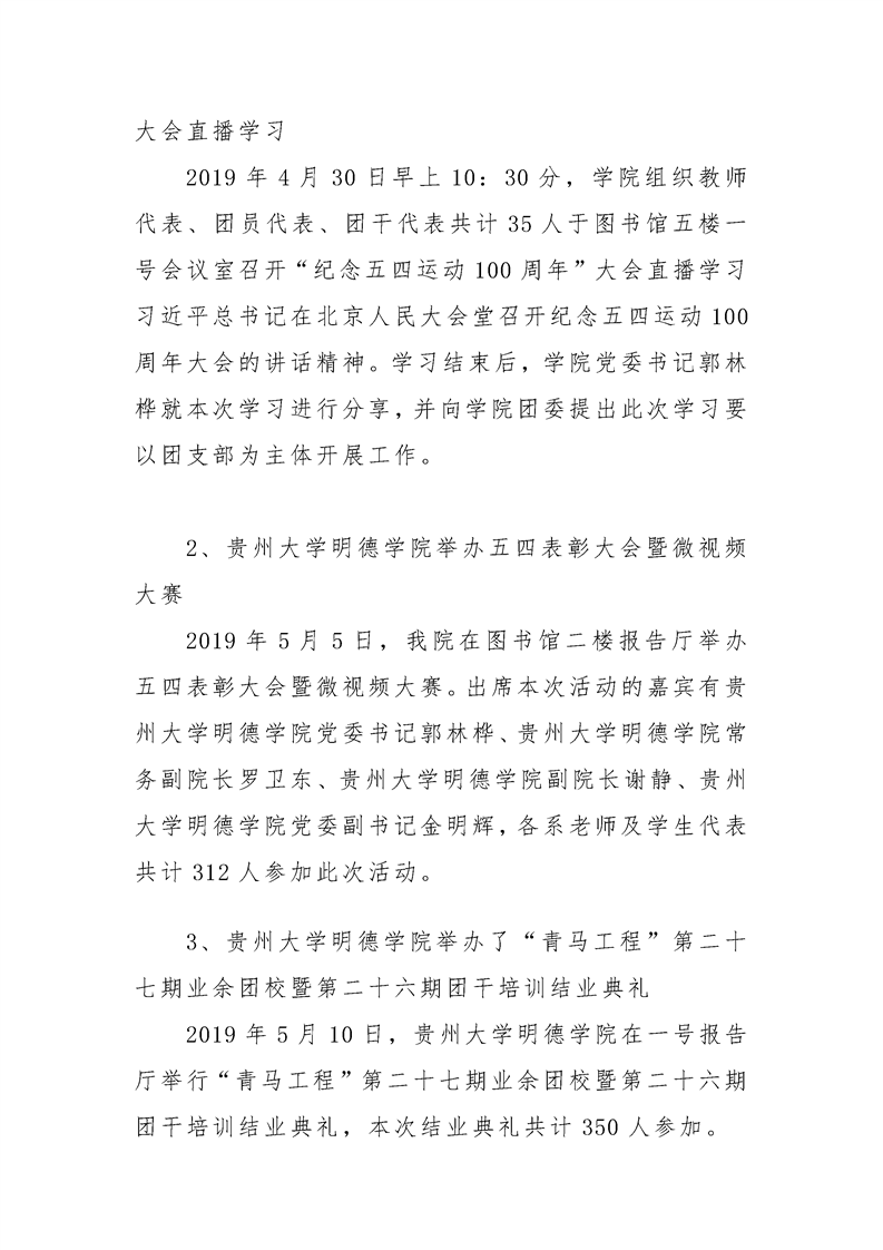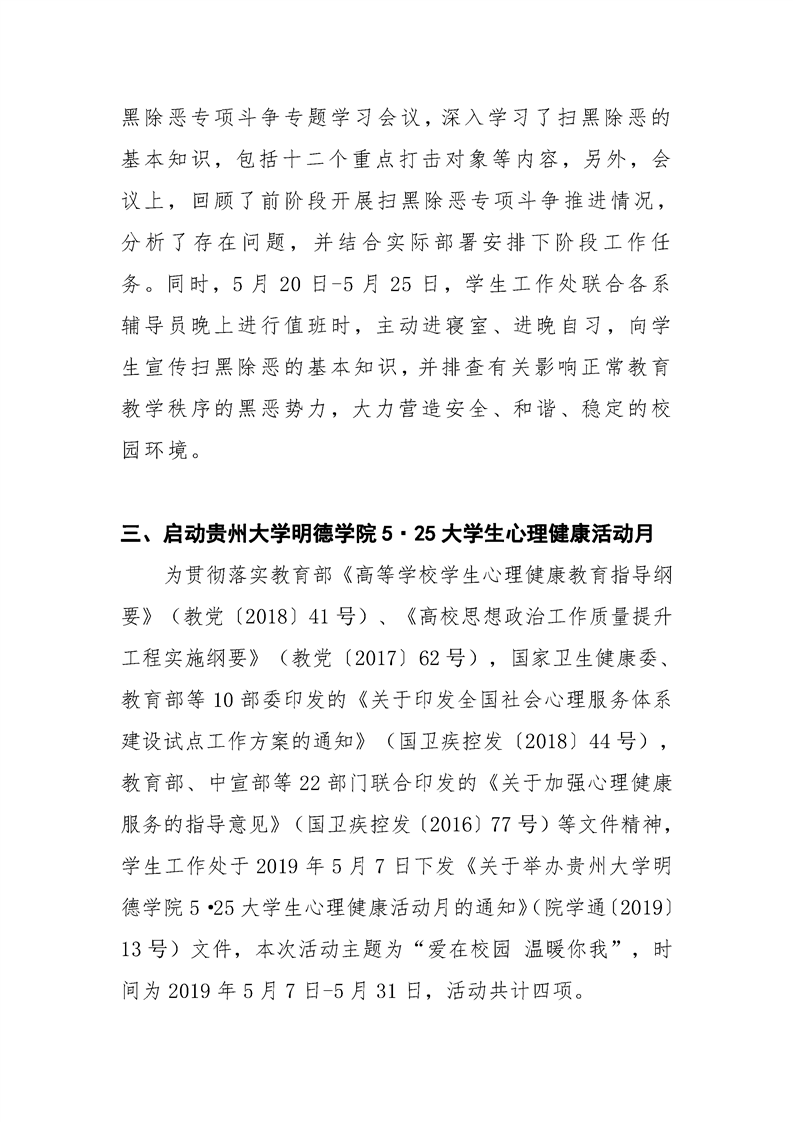 贵州大学明德学院学生工作处2019年5月工作简报