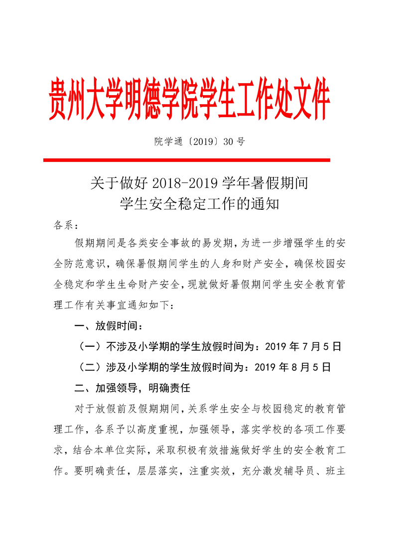 附件1:XX系关于对《关于做好2018-2019学年暑假期间学生安全稳定工作的通知》工作落实情况的报告.doc