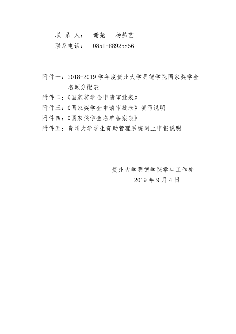 附件一:2018-2019学年度贵州大学明德学院国家奖学金名额分配表.xls