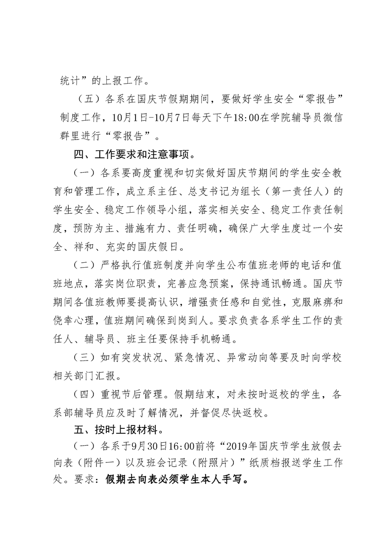 关于做好2019年国庆节假期间学生安全教育工作的通知