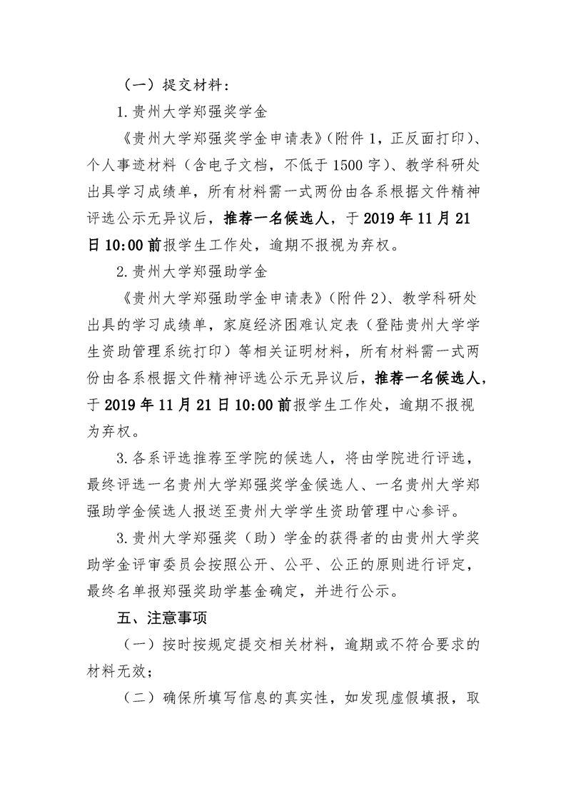 贵州大学明德学院关于组织评选2019-2020学年“贵州大学郑强奖(助)学金”的通知