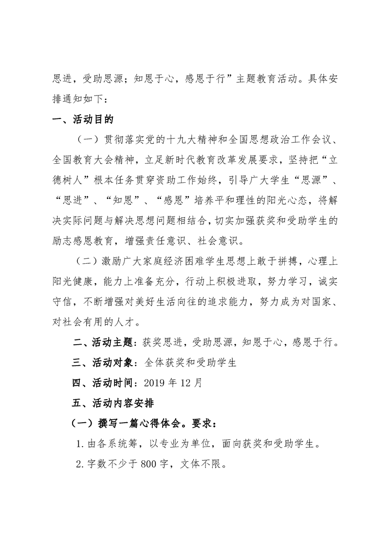 关于开展“获奖思进,受助思源;知恩于心,感恩于行”主题教育活动的通知