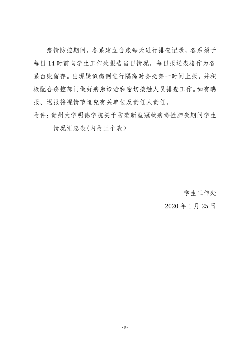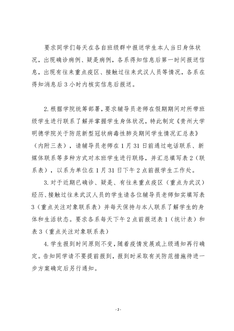 贵州大学明德学院关于防范新型冠状病毒性肺炎期间学生情况汇总表(内附三个表).xls