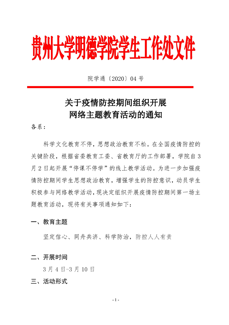 关于疫情防控期间组织开展网络主题教育活动的通知