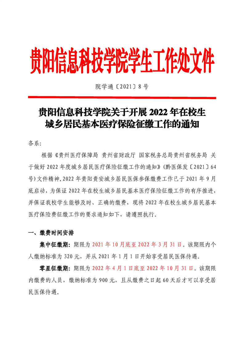 关于Beat365学生参加贵州省2024年城乡居民基本医疗保险征缴工作的通知
